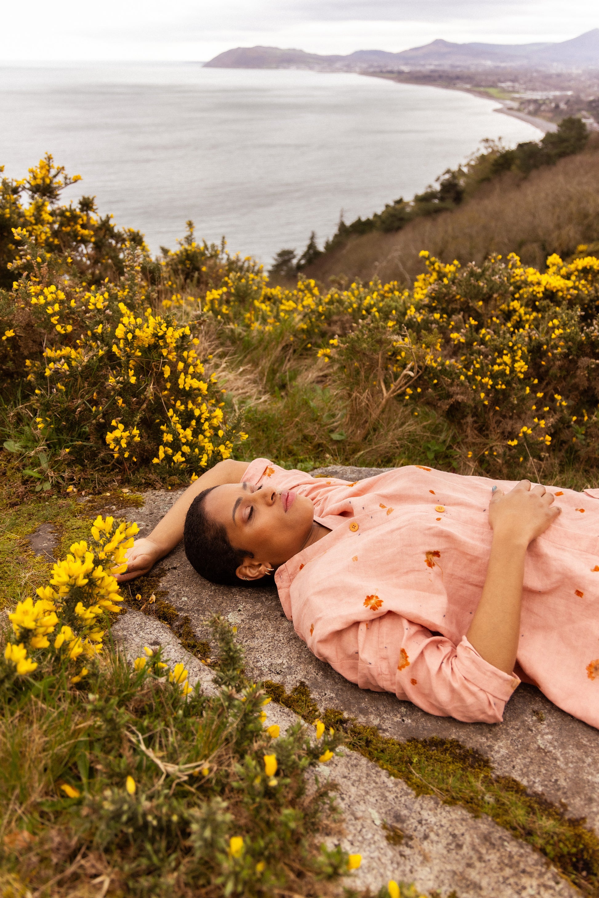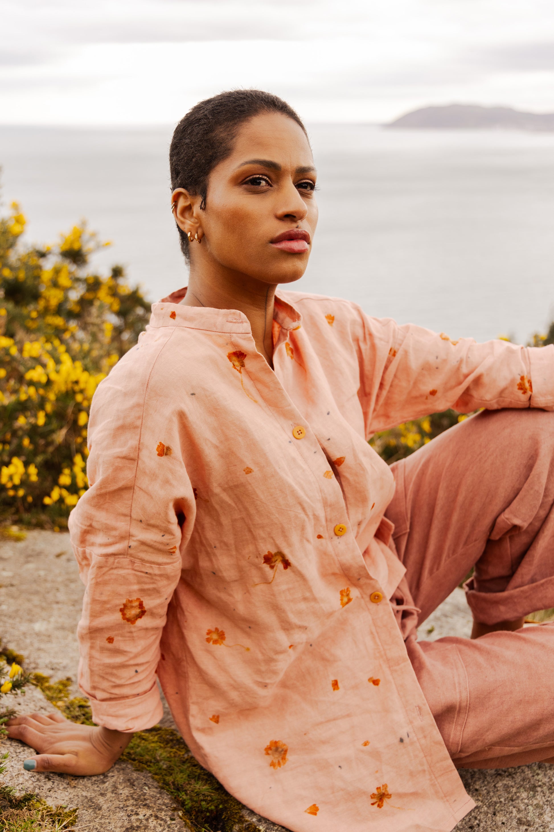 Our versatile loose fitting Irish linen shirt combines comfort, durability and style - featuring a vintage style grandfather collar and eco friendly corozo button fastenings. The natural texture of the linen and relaxed drape give off an effortlessly chic vibe and our natural botanical palette offers a unique and timeless charm.