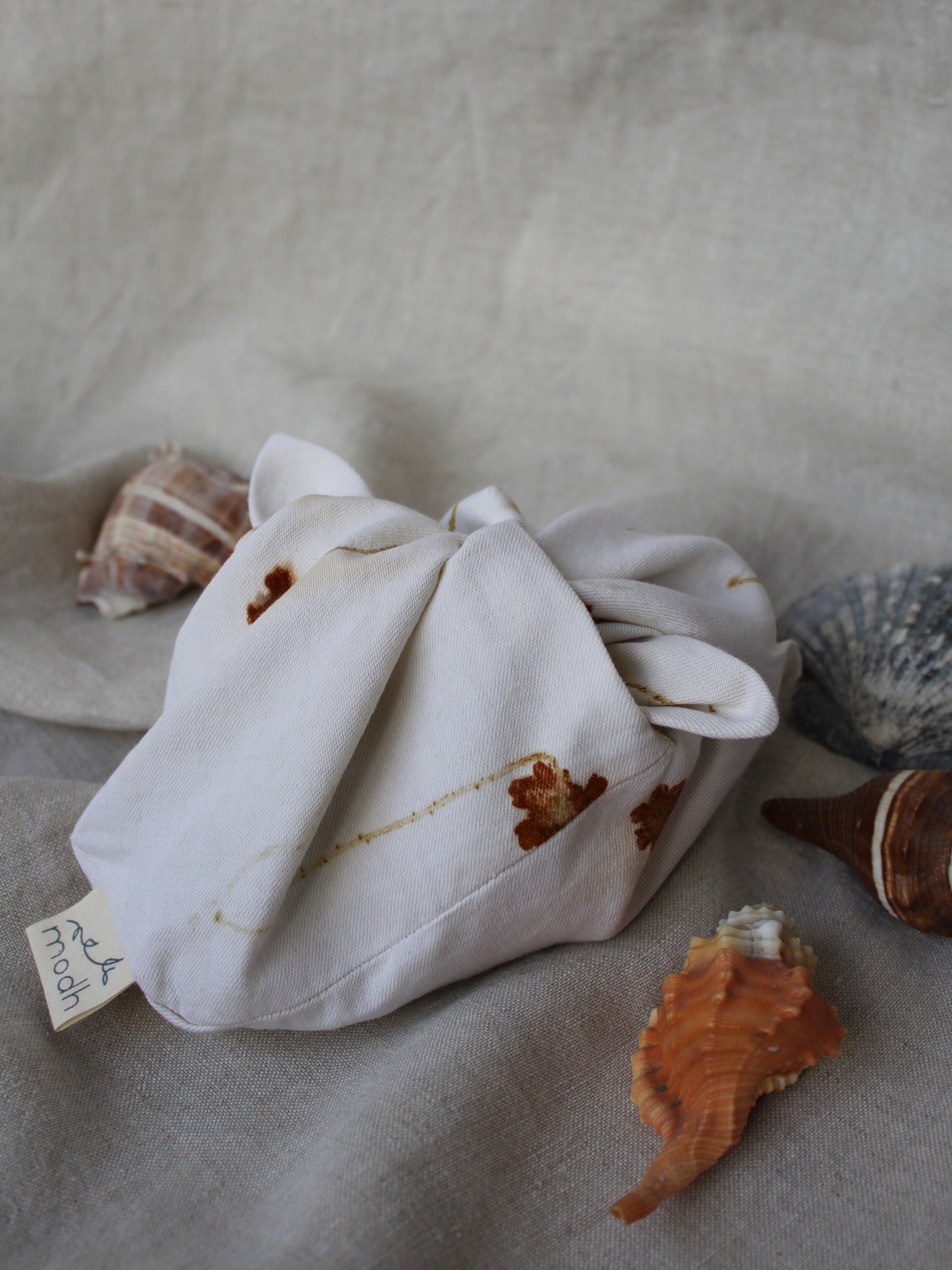 Staying true to our brand's ethos, we are committed to using only natural fibers, crafting fully biodegradable pieces that leave no harm on the environment. Drawing inspiration from the minimalist elegance of the Japanese bento bag, we designed this range of pouches to stay securely closed without the need for hardware, such as zippers often made from synthetic fibers, ensuring your cherished items remain safe and stylishly contained.